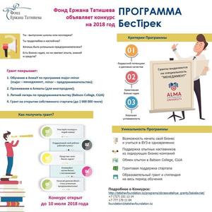 Фонд Ержана Татишева продлевает срок приема заявок на конкурс по Программе «БесТірек» до 10 июля 2018 года
